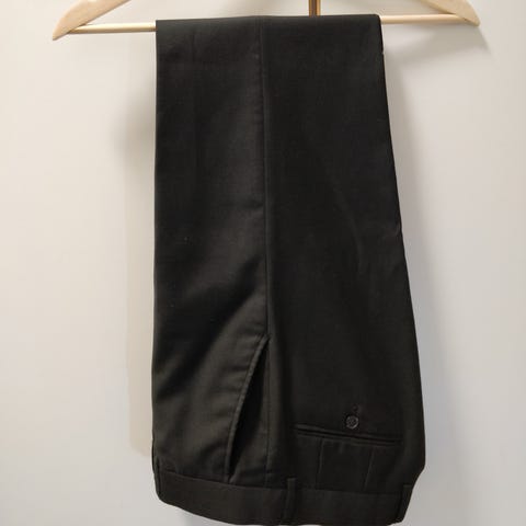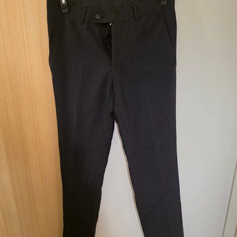 Muutamissa juhlissa käytetyt tummansiniset puvunhousut. Koko 33-30. Materiaali villa ja elastaani.