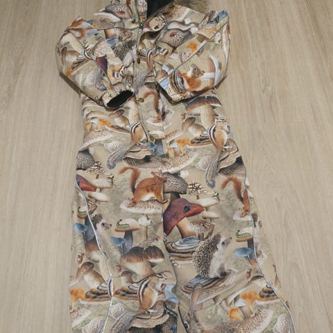 Myydään uudenveroinen ihanan lämmin Molon toppahaalari, koko 122. Meillä ehti vain muutamia kertoja viime talven kovimmilla pakkasilla päälle, ei ole kertaakaan pesty. Ainoa moite minkä löydän on polvien kohdalla heijastinosissa pientä "katkeamaa", jotka näkyvät kuvassa. Tuoksuton ja eläimetön koti.