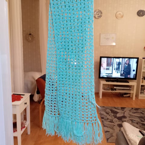 Oranssinvärinen kaulahuivi. Pituus 170 sekä pitkät hapsut. Kamera hiukan vääristää väriä. Sopii allergikoille kun ei sisällä villaa. Mutta on tosi lämmin ja kaunis kaulassa Postit 6.90