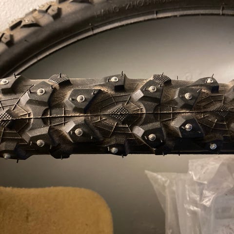 Jokusen vuoden ajetut nastarenkaat. Eivät enää riitä aktiiviseen ajoon. Mutta satunnaisessa talvipyöräilyssä loistavat, varsinkin jos verrataan kesärenkaisiin.