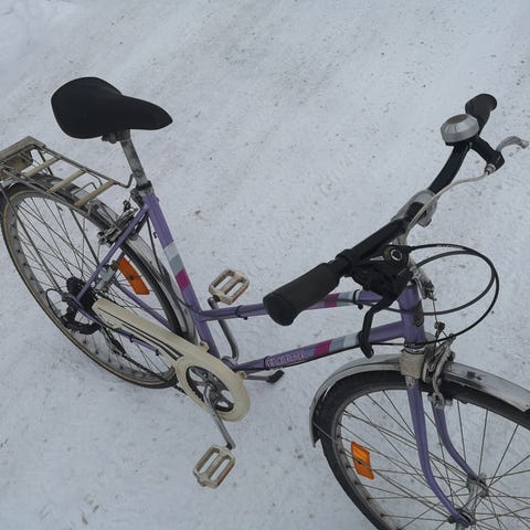 Naisten polkupyörä. Takahaarukkaa hitsattu ja maalattu, seisontatuki katkennut ja muuta pientä kulumaa. Toimii, mutta ollut pitkään käyttämättömänä niin kaipaa varmasti huoltoa. Vain nouto.
