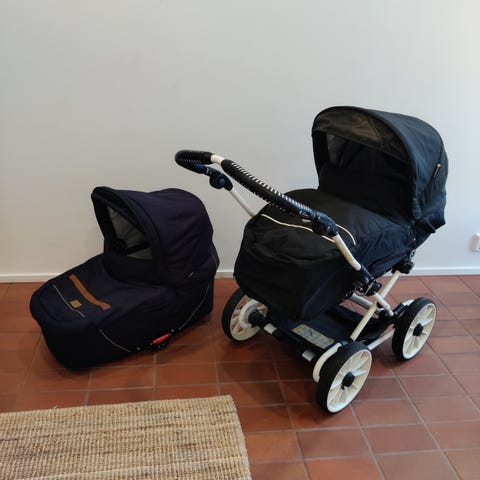 Koko setti mukaan, halutessasi myös hoitolaukku ja sadesuoja. Vaunujen renkaat ovat käytössä kuluneet mutta vielä hyvin toimivat. Muuten hyvä kunto. Nouto Kivistöstä.