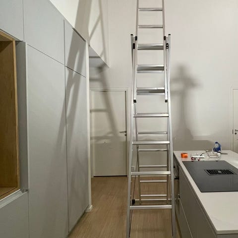 Alumiinirunkoinen työskentelyteline Tikli 178, jossa pyörät ja erilliset kulmatuet. Telineen kevyt rakenne helpottaa siirtämistä ja asennusta.