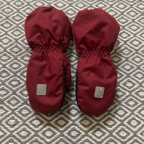 Myyntiin uutena ostetut ja yhden lapsen varahanskoina olleet Reiman Ote-talvihanskat. Tummansiniset, koko 5. Hyväkuntoiset, pientä jälkeä siellä täällä ja aavistus pehmentymää kärjessä mutta sopivat erinomaisesti vielä seuraavalle. Meillä oli aina useammat hanskat samaa kokoa vaihtohanskoina ja nämä eivät päätyneet käyttöön kuin satunnaisesti toisten hanskojen sopiessa värin puolesta paremmin vaatteisiin.