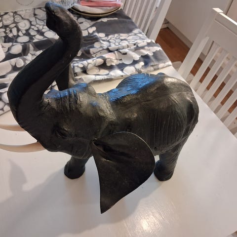 Myynnissä vielä kirjava koriste norsu. Muut koristeet myyty.
