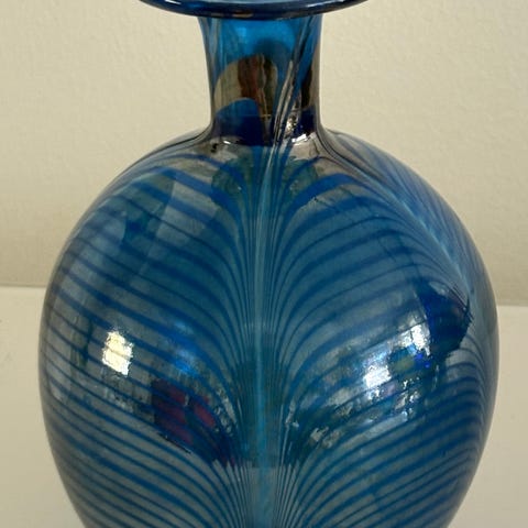 Kaunis sininen signeerattu lasimaljakko/pullo