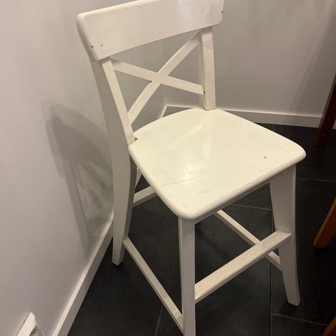 IKEA lasten tuoli, Vimund, sininen väriltään. Tuolissa on pyörät ja säädettävä korkeus. Istuinosa on pehmustettu ja verhoiltu kestävästä materiaalista. Sopii lapsille istuimeksi esimerkiksi työpöydän ääreen.