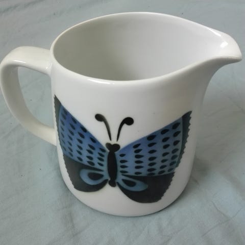Hyväkuntoinen Arabia 1 l perhoskannu keltamustalla perhosella myytävänä. Kannu on ehjä, naarmuton eikä siinä ole krakeloitumaa.