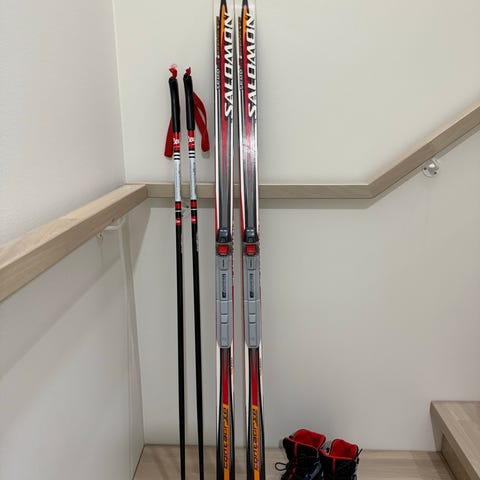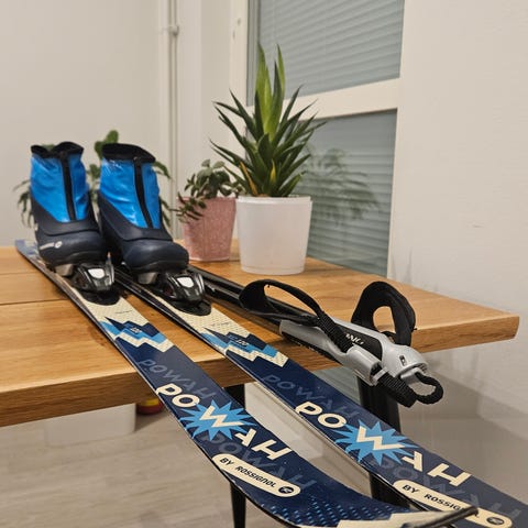 Myydään Madshus 120cm pitopohja sukset, NNN siteet. Rossignol 90cm sauvat. Sekä Alpina 31 koon monot.