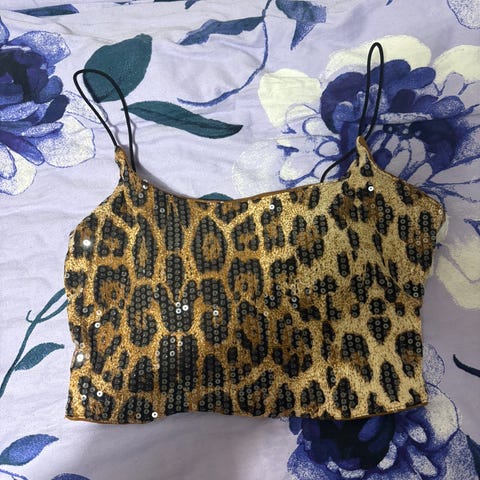 Kaunis leopardi toppi joka sidotaan selästä naruilla kiinni ja edessä myös kiinnitys❤️