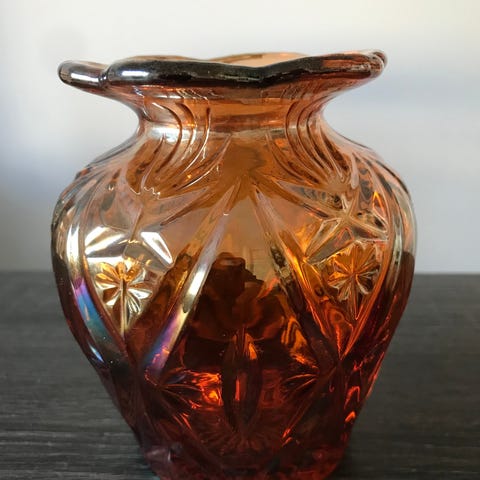 Riihimäen lysterilasi maljakko. Värinä läpinäkyvä ja oranssiin muuttuva yläreunoista. Tarjoa hintaa!!!