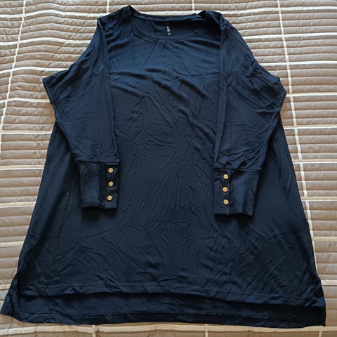 Ohut neulepusero, värit tummansininen ja pinkki.