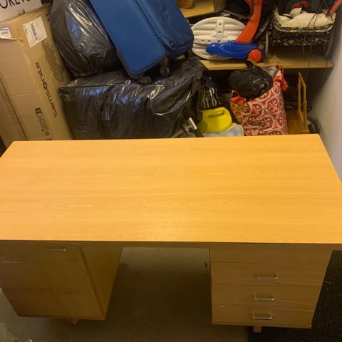 Pöytä muuten hyvässä jämäkässä kunnossa, mutta pöytätasossa tuskin jälkiä. En ole yrittänyt poistaa erityisillä aineilla. Tuoli myös hyvässä käytetyssä kunnossa. Nouto Savolanniemestä.