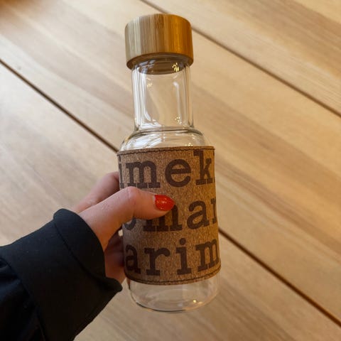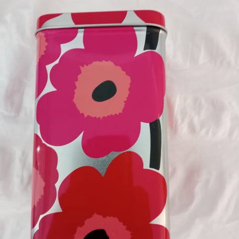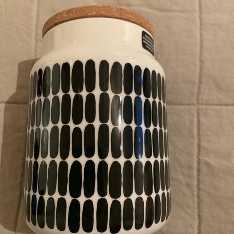 Marimekko lasipurkki puukannella. Purkki on valmistettu lasista ja siinä on puinen kansi. Soveltuu säilytykseen keittiössä tai muussa kodin tilassa.