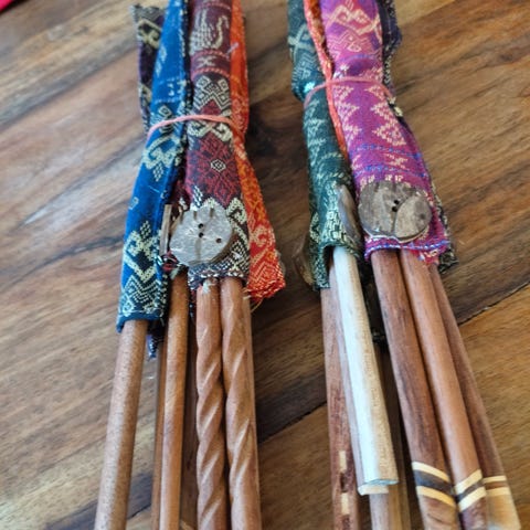 80-luvulla Kiinasta tuotuoja syömäpuikkoja. Paketissa olevat jotain puuta, muut muovisia.