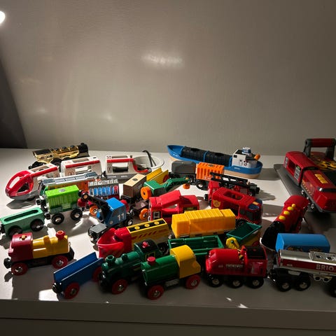 Todella iso junarata setti ja oheistarvikkeet. Kolme kassillista tavaraa. Mukaan kaksi eri asemaa, isoon asemaan tulee valot ja voi nauhoittaa oman kuulutuksen, myös mainosvalo kyltti johon voi vaihtaa kuvaa. Mukaan monta veturia ja junaa, kaksi ohjainta junille( vaatii patterien vaihdon). Monessa erikoispalikassa( mm. Sillasta ) kuuluu ääniä, mutta vaatii uusia pattereita.