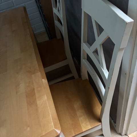 Joitain kulumia pöydässä ja tuoleissa.