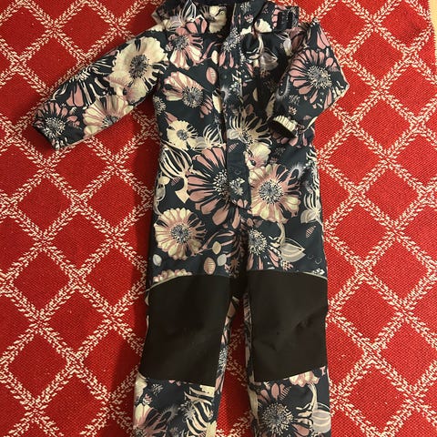 Hyväkuntoinen ja ehjä Reiman toppahaalari, koko 110. Väri metsänvihreä, havupuukuosi.