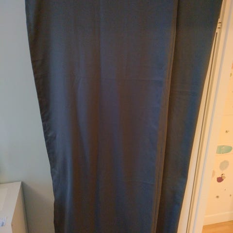 Siistit, hyväkuntoiset pitkät pimennysverhot. Toisen verhon takana tahra joka ei näy käytössä.