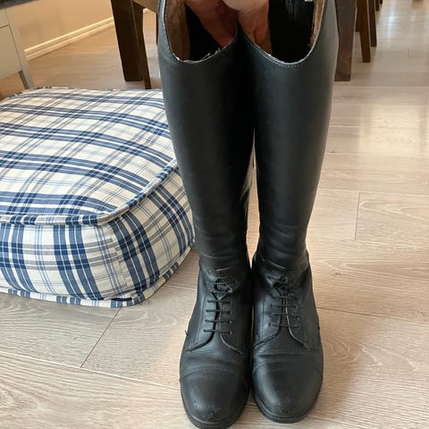 Soubirac 42 koon nahkaiset ratsastussaappaat. Täältä ostettu, kesti muutaman käyttökerran ennen kuin toinen vetoketju meni rikki. Kuitenkin muuten mielestäni käyttökelpoiset jos jaksaa viedä vetoketjun korjattavaksi😊