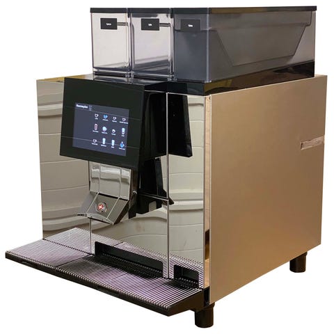2 group espresso machine which is designed to be plumbed in. But you can use it as a portable machine, drawing water out of a water jug. The machine delivers perfect shot of espresso at the push of the soft touch start/stop button. Easy to view, the boiler pressure gauge is color coded and indicates if the machine is up to operating pressure.