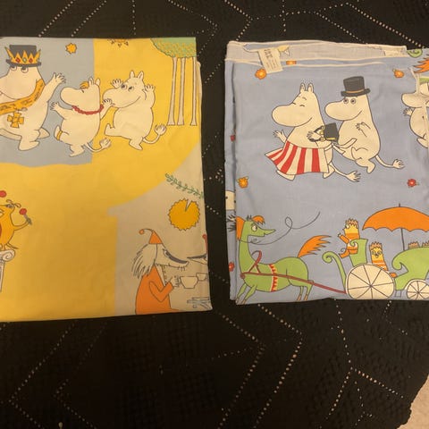 Myydään 2kpl Muumi lasten talvikuosisia pussilakanasettejä. Tekstiilit ovat väriltään vaaleat, pääasiassa valkoista ja vaaleansinistä, ja ne on valmistettu puuvillasta. Pussilakanan koko 120x160 ja tyynyliinan 40x60