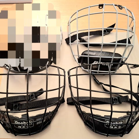 Kuvassa vielä kiinni kypärässä, joka on rikki. Ristikko kunnossa.