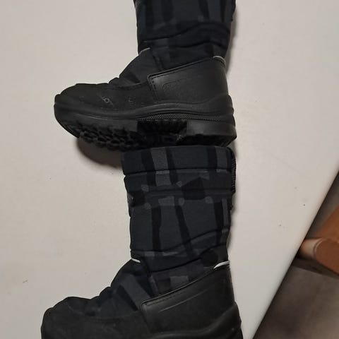 Kuoma lasten talvikengät, koko 25. Väri musta, unisex-malli. Kengissä on lämmin vuori ja ne soveltuvat kylmiin olosuhteisiin.