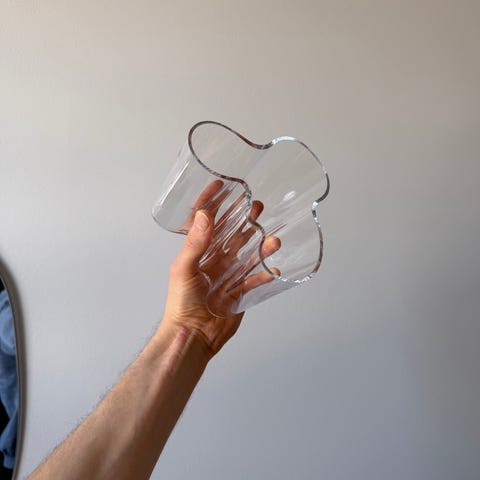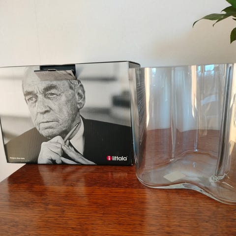 Myydään Iittalan Aalto -maljakko kirkasta lasia. Korkeus 12 cm. Hyvin vähän käytetty.