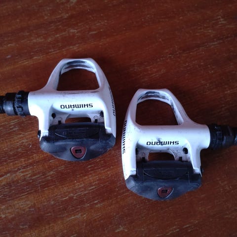 Shimano retro PD-M737 lukkopolkimet. Paljon ajetut ja elämää nähneet. Laakereissa pientä välystä, mutta toimivat kuitenkin.