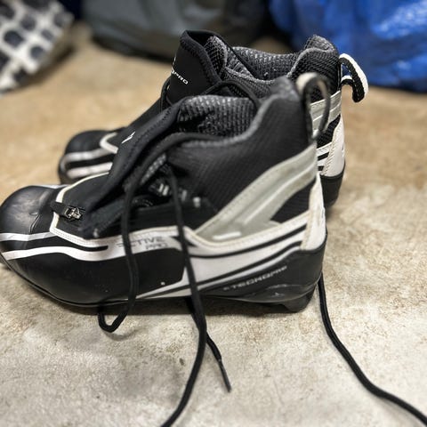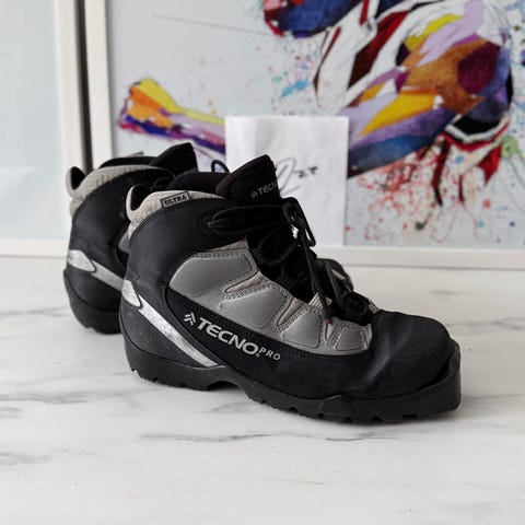 Hyväkuntoiset muutamalla lapsella muutaman talven pakolliset hiihdot hiihdetyt monot. Ikää toistakymmentä vuotta. SNS-side, yksi leveä raita pohjassa. Salomon. Pohjallinen 24,5 cm pitkä. Koko 37 1/3.