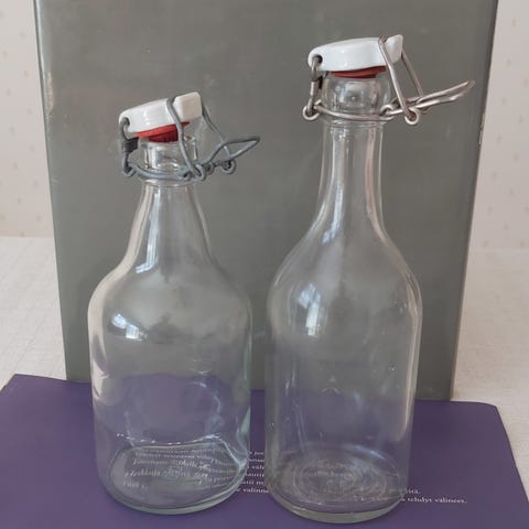 Vanhoja patenttipulloja 0,33 ltr korkkeineen 3 kpl ja korkkeja varaosiksi 4 kpl