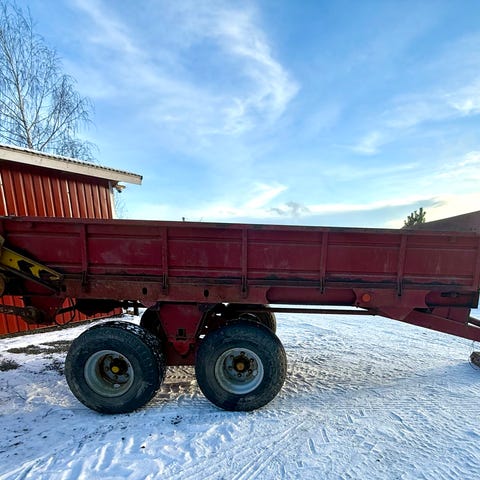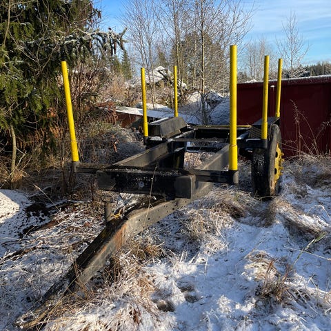 Rankakärry.pohja ollut aikoinaan vaneria ja purettu pois, viime vuosina ajettu rankoja mettästä. Ollut mf 35 perässä. Lavan pituus 270cm (koko pituus 380cm) laitojen kork.38cm. Lev 180cm. Takalaita löytyy mukaan.