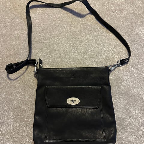 Laukku on mustaa nahkaa. Kunto erittäin hyvä.