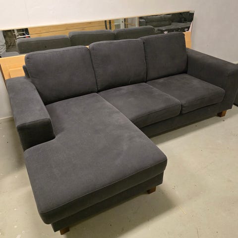 Myynnissä rahi ja Askon tummanharmaa divaanisohva.