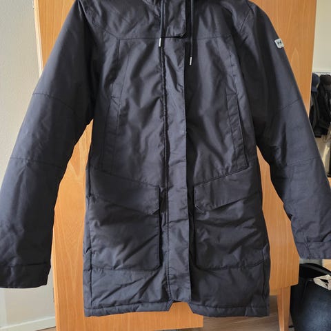 Hyväkuntoinen ”pepunpeittävä” ulkotakki. Irroitettava turkis hupun reunassa