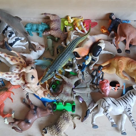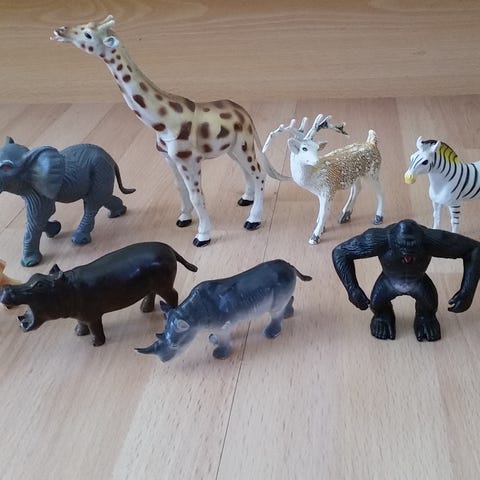 Myyn kuvan setti, sisältäen 18 kpl muovisia Afrikan eläimiä sekä muoviaitaus. Eläimet ovat noin 2-4 cm:n korkuisia ja aitaus 9 x 9 cm. Aitauksen saa myös avattua, kts kuva. Erittäin hyvässä kunnossa. Löytyy Vaasasta. Voin myös postittaa kuluja vastaan.