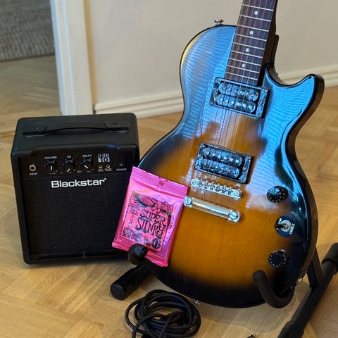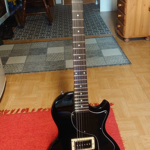 Hyväsaundiset humbucker mikit, vaahtera kaula, ruusupuu otelauta. Uudet kielet.