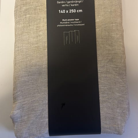Pehmeä ja läpikuultava pellavaverho, väriltään lähemmäs turkoosia.