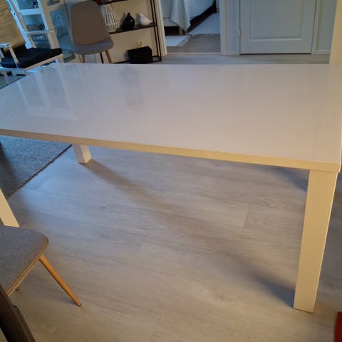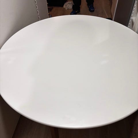 Halkaisija 100cm. Trumpettijalan pultit vaatii kiristystä. Kolhuja ja muutama tussinjälki löytyy.