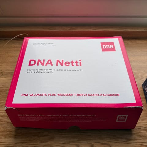 DNA valokuitu plus -modeemi F-3890V3 kaapelitalouksiin. Toimii moitteetta.