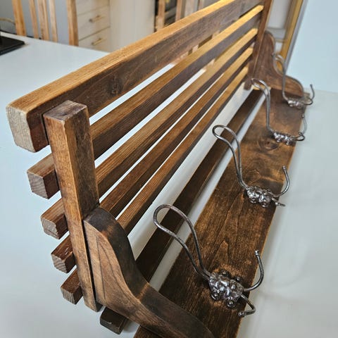 Myydään teräksinen hyväkuntoinen Habo merkkinen kaksitasoinen hattuhylly jossa tanko henkareille ja 4 ripustuskoukkua.