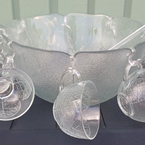 Arcoroc boolimaljasetti. Sis. aluskulho, boolimalja, 12 kpl laseja ja ripustimet sekä kauhan. Siistikuntoisia kaikki. Alkuperäinen pakkaus aikojen saatossa kärsinyt.