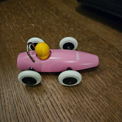 Brion kasattava Klovni ja kotimainen Jari-puulelun valmistama puuauto. Molemmat hyväkuntoisia ja lapsille turvallisia.