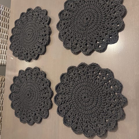 Käyttämättömät Granit- pöytätabletit, valmistettu 100% puuvillasta. Väri ruskea. Koko 49 x 33 cm. Soveltuu pöydän suojaksi ja koristeeksi. 4 kappaletta.