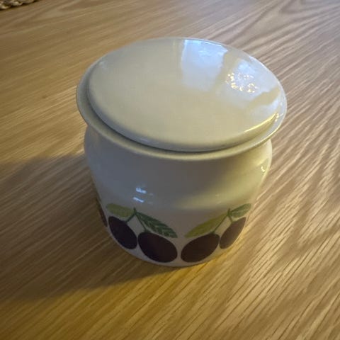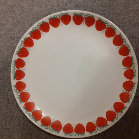 5 kpl ruokalautasia, 2 teekuppia ja purkki. Hyväkuntoiset, ei havaittavia halkeamia tms.