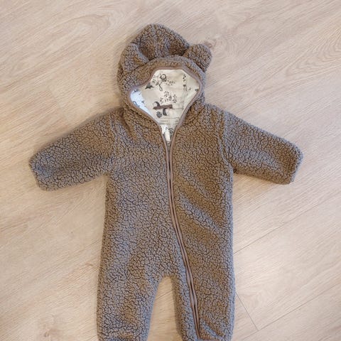 Myydään HM:n ruskea trikoovuorinen pehmeä pileehaalari koko 68 cm.Söpöt nallekorvat ja häntä takana, sekä kädet lämpimänä pitävät käänteet.Sopii vauvalle moneen käyttötarkoitukseen.Käyttämätön, kerran pesty hajusteettomasti.Nouto onnistuu joustavasti Laajasalosta ja Hakaniemestä, myös postitus mahdollinen ostajan kustantamana sekä Toridiili onnistuu.Hinta 15 e.