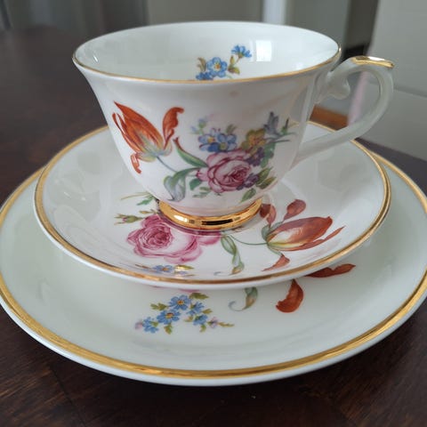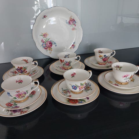 Arabia apilanlehti kulta-aika kahvikuppi, tassi ja pullalautanen 6kpl.