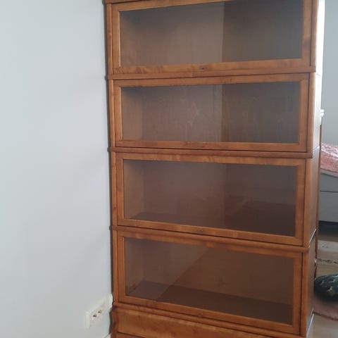 Boknäs hyllyssä on neljä vitriiniä lasiovilla ja yläsokkeli, ala-salasokkeli. Salasokkelissa on laatikko. Avattaessa vitriinin ovi liukuu vitriinin sisään.
