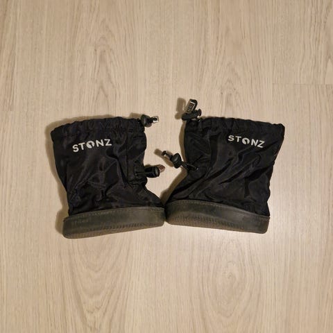 Käyttämättömät Stonz-paljasjalkakengät L-koossa (15,0-15,2cm (n. 1-2/2,5v), leveys n. 9cm). Kengissä on sisällä kevyt fleecevuori ja pohja on vedenpitävä. Kengät sopivat täten myös välikauteen.